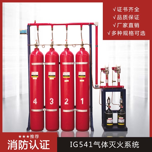 一、產品簡介: IG-541滅火系統采用的IG-541混合氣體滅火劑是由大氣層中的氮氣(N2)、氬氣(Ar)和二氧化碳(CO2)三種氣體分別以52%、40%、8%的比例混合而成的一種滅火劑。
