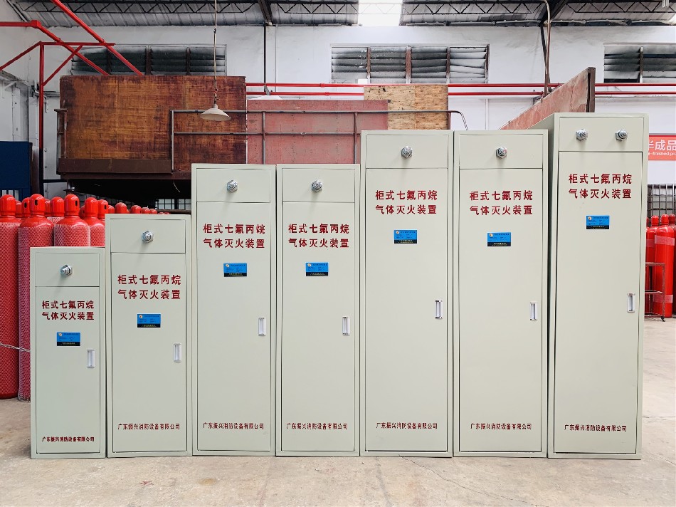 柜式七氟丙烷滅火裝置也稱為無管網(wǎng)滅火裝置、預(yù)制滅火裝置,由滅火劑瓶組、容器閥、電磁型驅(qū)動裝置、金屬軟管、信號反饋裝置、噴嘴、柜體等組成,不需安裝滅火劑輸送管道,不需設(shè)置專用的儲瓶間。柜式七氟丙烷滅火裝置設(shè)置在防護區(qū)內(nèi),當(dāng)火災(zāi)發(fā)生時,直接向防護區(qū)噴射滅火劑,滅火劑無管路損失,滅火速度更快、效率更高。柜式七氟丙烷滅火裝置具有自動、手動兩種啟動方式。