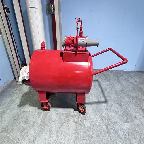 半固定式(輕便式)泡沫滅火裝置主要由常壓泡沫液儲罐、泡沫槍、管線比例混合器、消防水帶、及推車車架等構成。